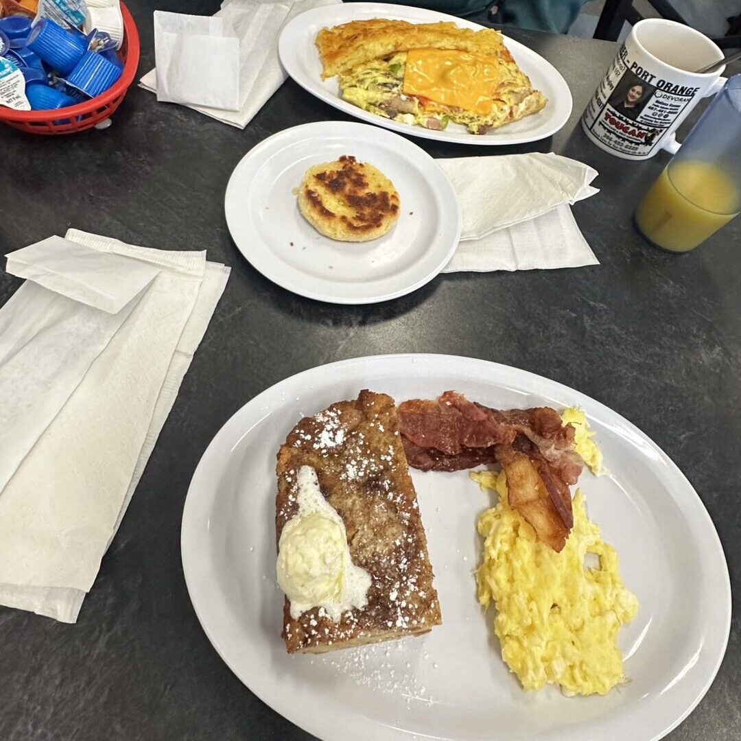 Typisch für das Frühstück in Florida sind Diners, die unbegrenzten Kaffee und große Portionen von Eiern, Pfannkuchen, Sandwiches und Bagels anbieten. Familiengeführte Diners und Ketten wie Denny’s und IHOP sind besonders beliebt.