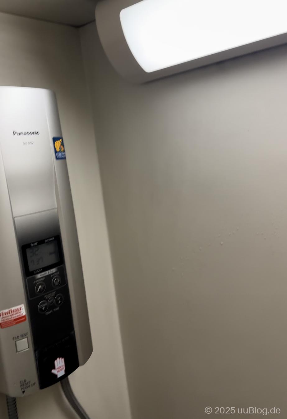 Lediglich im Wagen der 1. Klasse gibt es eine einzelne Dusche, die sich die Fahrgäste der 1. Klasse teilen können.