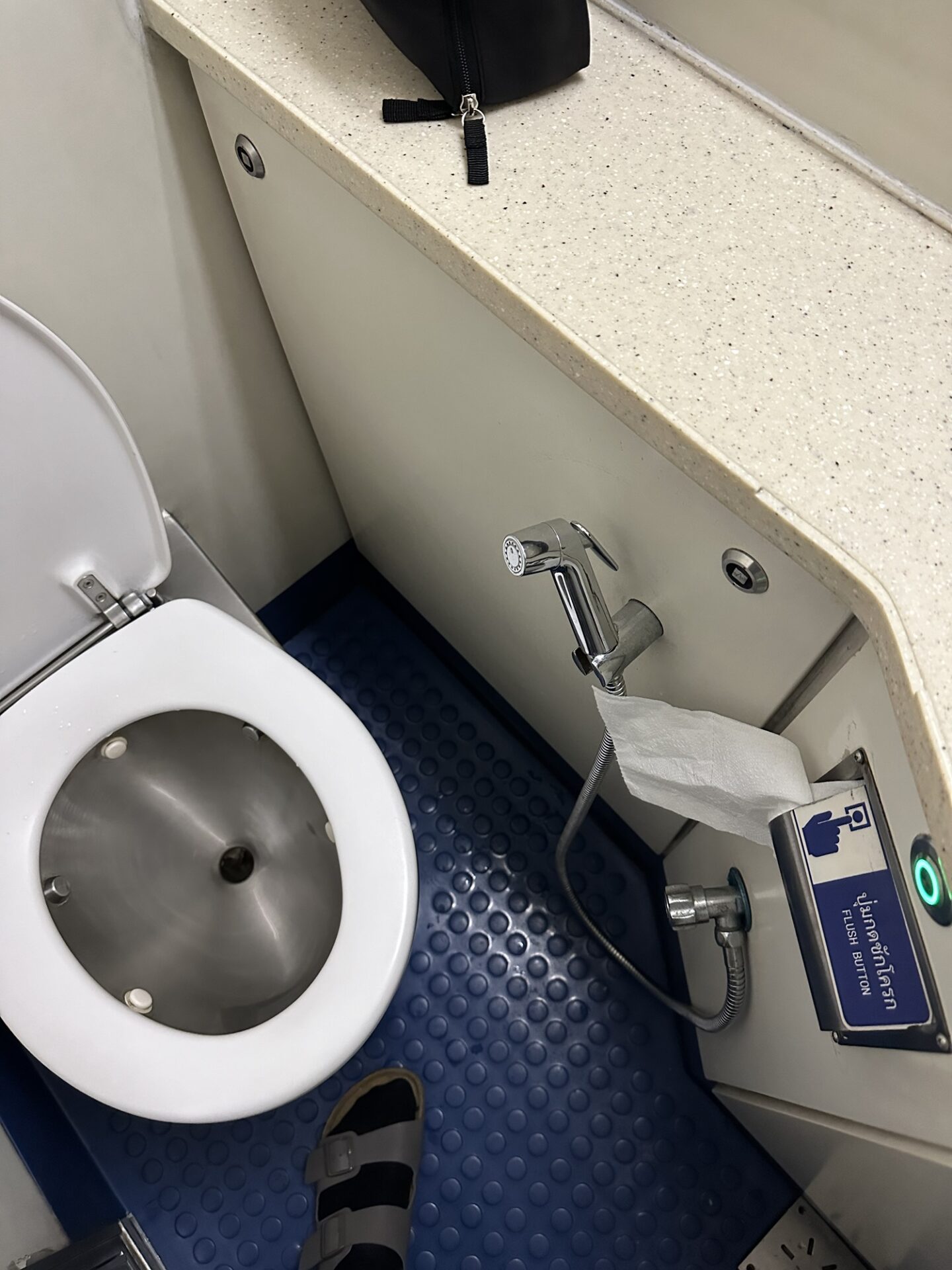 Trotz dessen, dass wir sehr viel Datenvolumen hatten und man fast durchgängig guten 5G-Empfang hatte, war das Handy-Internet extrem langsam (mehr zu mobilem Internet in Thailand, hier). Vielleicht, weil wir als Zug mit mehreren hundert größtenteils aktiv ihr Handy nutzenden Leuten die Funkzellen auf dem Land überfordert haben. Wer etwas Unterhaltung in der Dunkelheit möchte, lädt sich also besser vorher etwas runter. Die Steckdosen an den Betten haben hingegen bei uns tadellos funktioniert. Wir sahen aber auch einen Reisenden, bei dem diese nicht funktionierten. Eine Powerbank kann also ratsam sein.